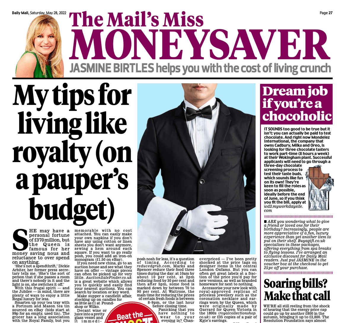 My latest column at the Daily Mail is on Mail+ and it’s all about how to live like royalty on a pauper’s salary.