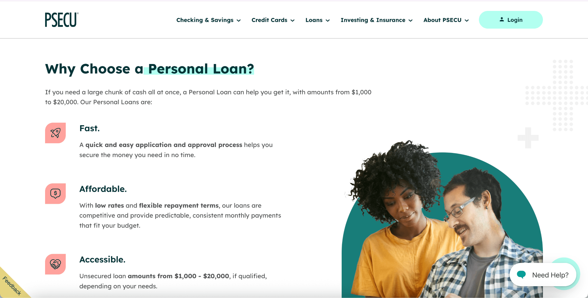 PSECU provides quick, affordable and flexible unsecured personal loans with easy application methods. The approval process is straightforward, and repayment terms are designed to accommodate your budget. You can utilize the funds for nearly any purpose — whether it’s for debt consolidation, home improvement projects, travel or unforeseen expenses.