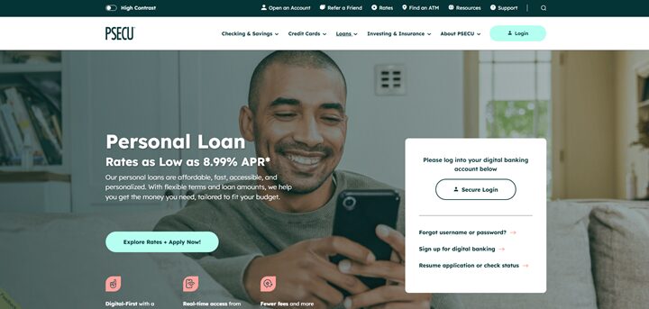 PSECU is a full-service, digital-first credit union based in Harrisburg, Pennsylvania. Its auto loans are available for new and used vehicles, lease buyouts and refinancing. You can choose loan terms between one and 96 months, with the current annual percentage rate (APR) starting at as low as 4.69% for terms up to 63 months.