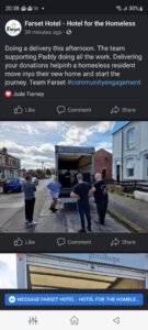 Always wanting to help others, William also volunteered to help move residents from the hostel into their new homes when they got them. This was, of course, soul crushing for him, as he was still without a permanent address. But he knew his time would come – and it did! He finally was able to move into his own flat, which came at a good time as his own health deteriorated and he had to give up volunteering – but he still donates to the food bank, to keep supporting those who are in similar situations that William has lived through.