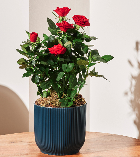 Red Rose Plant with Blue Pot, £22, thortful
